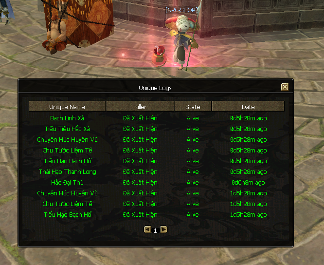 Ngoài F10 shop phụ của server có tại NPC cạnh kho Trường An để bày bán thêm các vật phẩm cần thiết khác.
