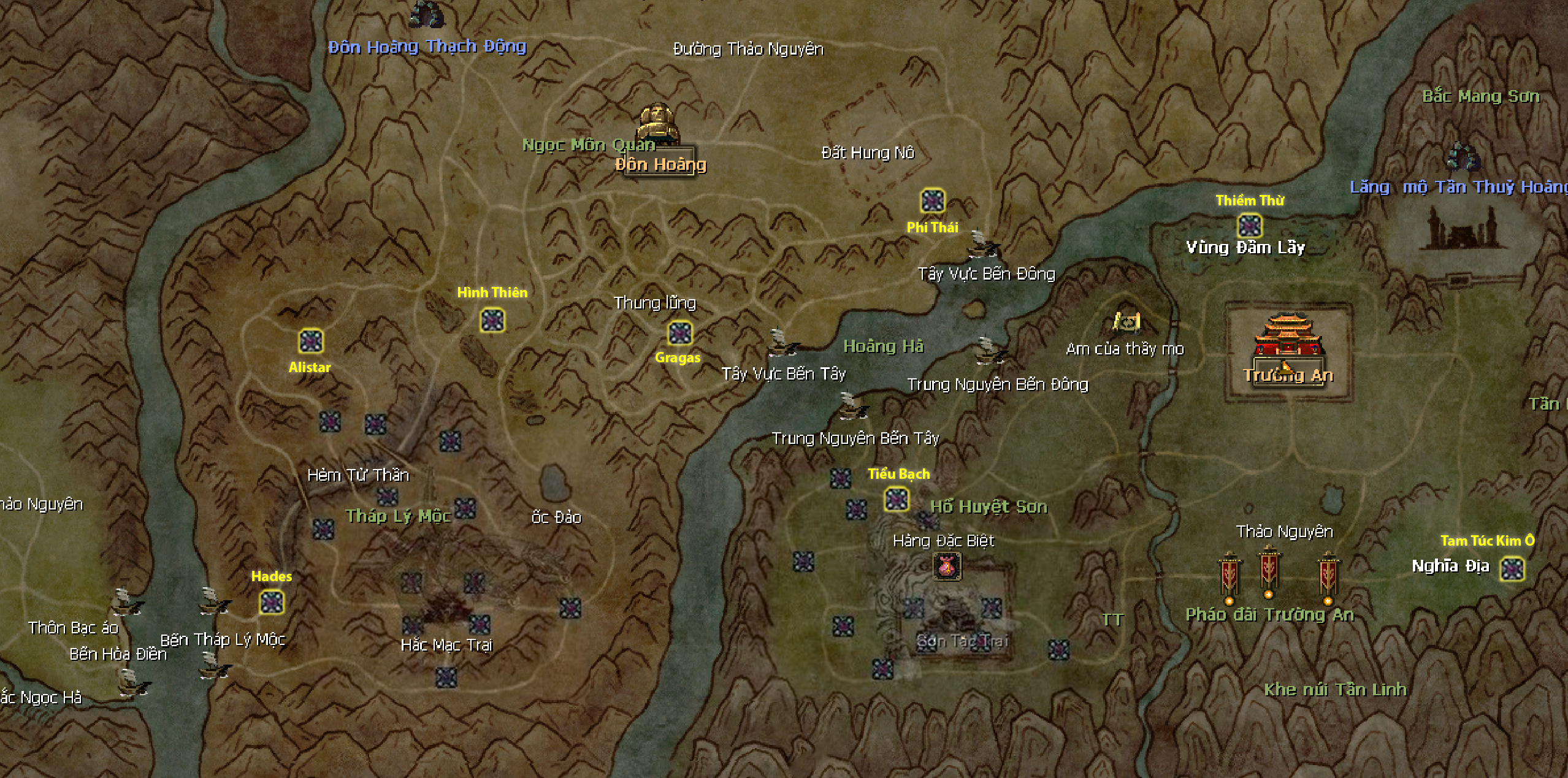 Điểm boss đánh dấu bằng biểu tượng Ánh vàng và Chữ vàng là Boss Thần Thú, Xuất hiện cố định tại vị trí được đánh dấu trên bản đồ. Phần thưởng và các thông tin khác các bạn tham khảo ở phần thông tin máy chủ.